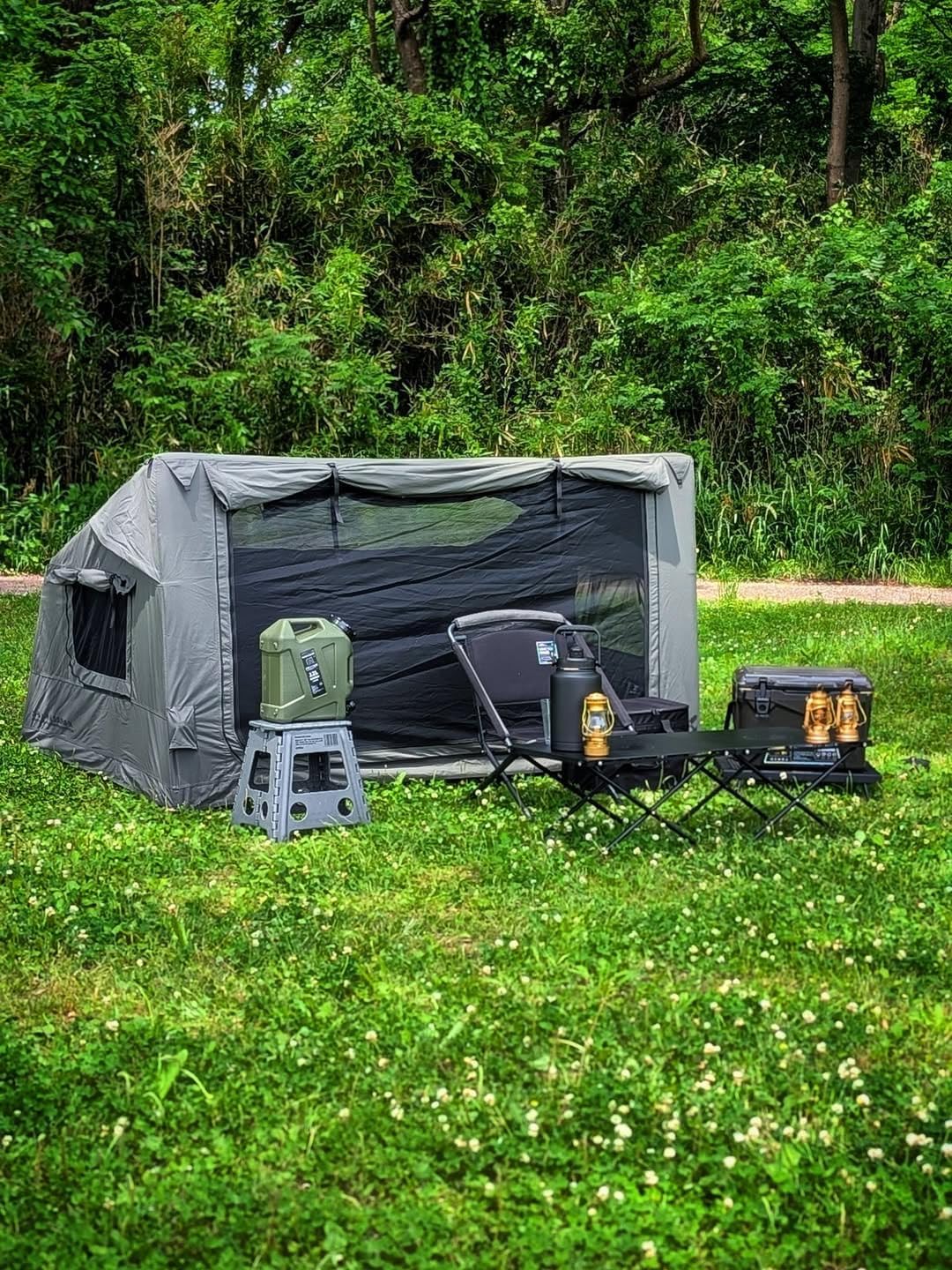 | Assembly Instructions Description | Inflate and set up using the manual pump provided. Ensure all air beams are fully inflated for stability. Stake the tent down using the provided pegs and guy ropes. Deflate and pack away using the storage bag. |