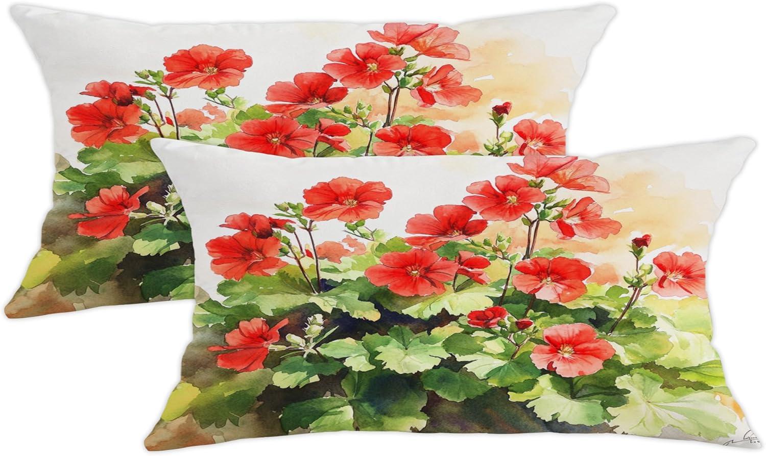 Spring Floral Pillow Covers Set of 2, Red Geranium Plant Throw Pillows Case, Outdoor Decorative Square Home Decor Cushion Covers for Sofa Bed Couch 32x32 Inch